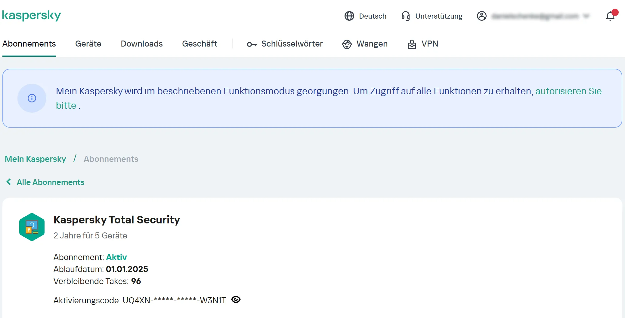 Klicken Sie auf Benutzerkonto verwalten. Sie gelangen nun auf die Webseite Ihres MyKaspersky-Kontos.